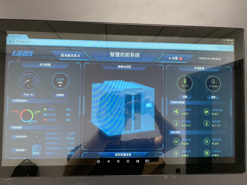 1臺服務器式配電柜,11臺服務器機柜,2臺房間級40KW雙系統(tǒng)上送風恒溫恒濕機組,1套動環(huán)監(jiān)控系統(tǒng),該方案有快速部署、高效節(jié)能、空間緊湊、靈活擴展等特點,有效滿足客戶在云時代對數(shù)據(jù)中心高效可靠、快速靈活和智能管理的需求。