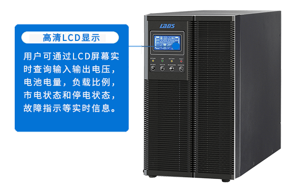 用戶可通過LCD屏幕實時查詢輸入輸出電壓,電池電量,負載比例,市電狀態和停電狀態,故障指示等實時信息。